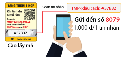 => Cách thức thực hiện hết sức đơn giản: Quý khách vui lòng cào nhẹ lớp tráng bạc của tem tích điểm được dán trên mỗi hộp sản phẩm để lấy mã số tích điểm. Sau đó tiến hành tích điểm và đổi quà theo hướng dẫn dưới đây.